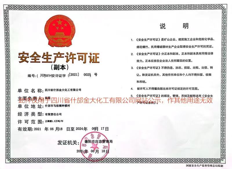 四川省什邡金大化工有限公司-是位于中國(guó)四川省的一家專(zhuān)業(yè)生產(chǎn)磷化工系列產(chǎn)品的廠家。所處地理位置資源豐富,交通便利,緊鄰成綿高速?gòu)?fù)線,距離兩路口火車(chē)站1000米。公司成立于1996年,多年來(lái)一直從事磷酸鹽的開(kāi)發(fā)與生產(chǎn)。公司擁有職工65余人,其中各類(lèi)工程技術(shù)人員20人,資產(chǎn)總額5000萬(wàn)元,占地11000余平方米。